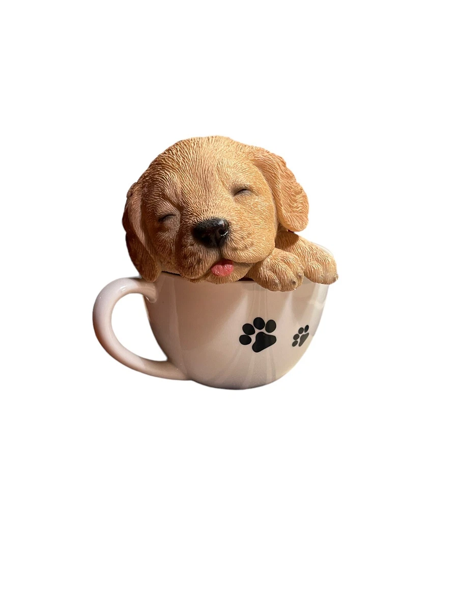 Source : www.etsy.comGolden Retriever Puppy in a Mug Resin Puppy in Ceramic Tea Cup